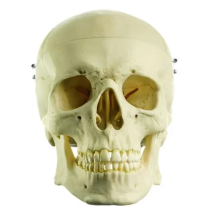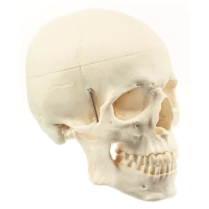 Natural cast, made in SOMSO-Plast. Removable vault, lower jaw movable. Life-like reproduction of the bony skull. Model separates into 3 parts.